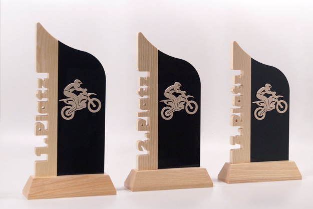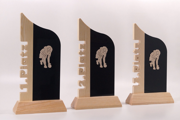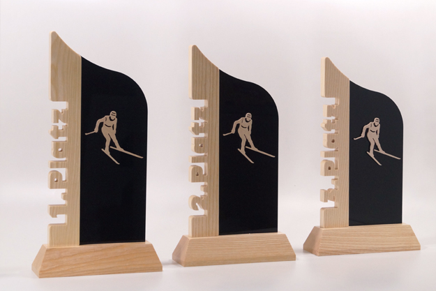 Pokale mit einem trapezförmigen Sockel aus massiver Esche natur,