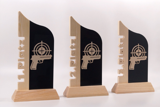 trapezf. Sockel, Säule 3.Platz, Sportsymbol Schützenpokal Pistole |