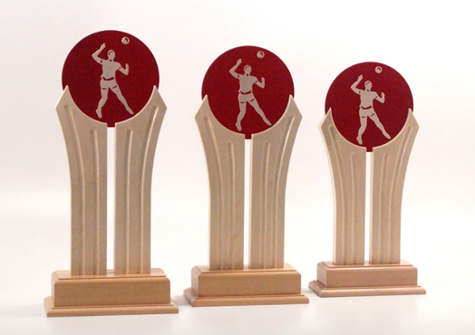 Rechtecksockel natur, 2 Säulen, Acrylglas, Sportsymbol Volleyball |