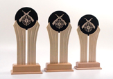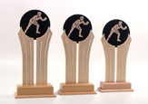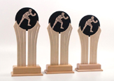 Pokale mit einem rechteckigem Sockel aus massiver Buche natur,