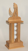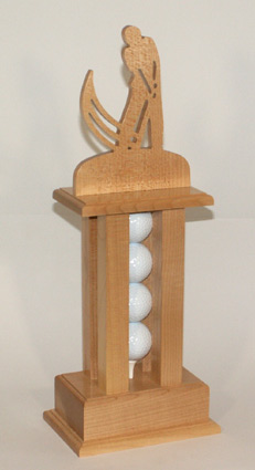 Pokale für die Sportart Golf (auch andere Sportarten möglich) Rechtecksockel, darauf 4 Vierkanntsäulen und Zwischenplatte, als Krone ein Golfspieler. Pokal komplett aus Buche gefertigt.