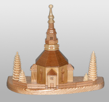 Kirche aus Buche und Weißbuche,Sockel aus Buche, natur lackiert
