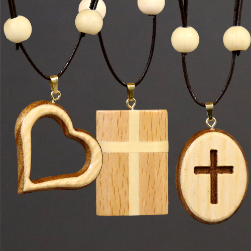 Schmuckanhänger aus Holz aus verschiedenen Hölzern und Formen