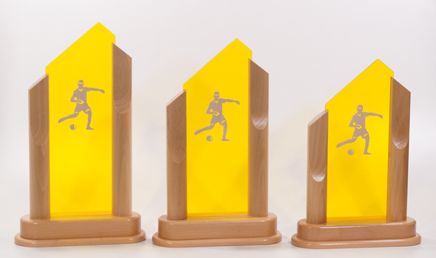 ovaler Sockel natur mit 2 Säulen, Sportsymbol Fussball |