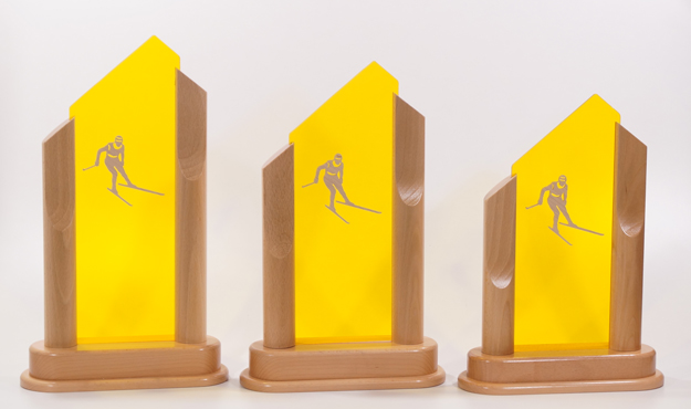 ovaler Sockel natur mit 2 Säulen, Sportsymbol Skilanglauf |