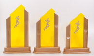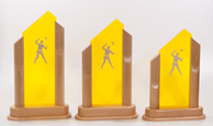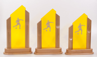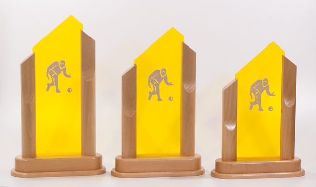 ovaler Sockel natur mit 2 Säulen, Sportsymbol Kegeln |