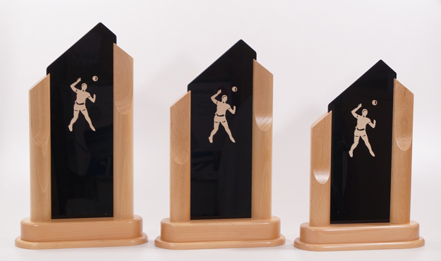ovaler Sockel natur mit 2 Säulen, Sportsymbol Volleyball |
