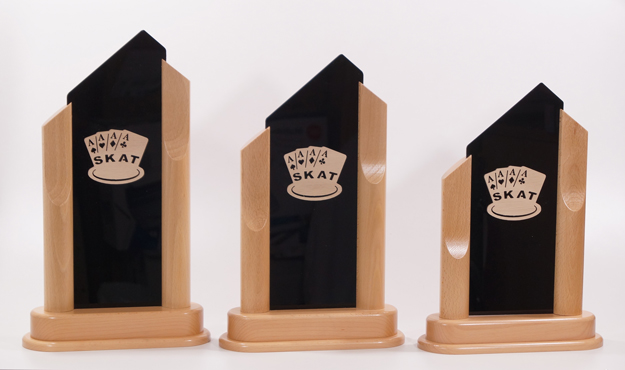 ovaler Sockel natur mit 2 Säulen, Sportsymbol Skat |