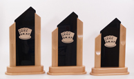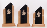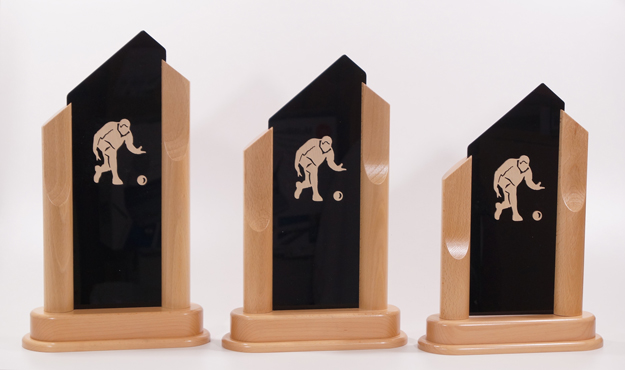 ovaler Sockel natur mit 2 Säulen, Sportsymbol Kegeln |
