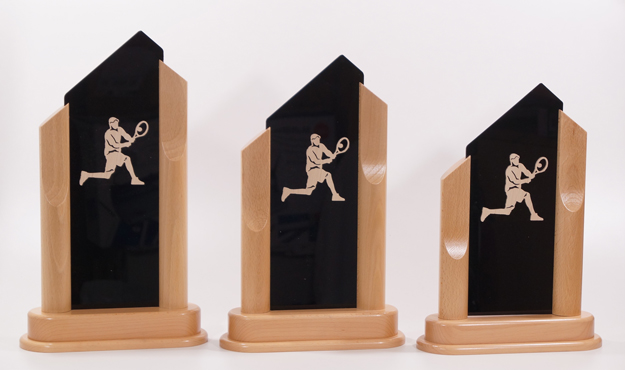 ovaler Sockel natur mit 2 Säulen, Sportsymbol Tennis |