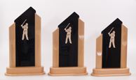 ovaler Sockel natur mit 2 Säulen, Sportsymbol Golf |