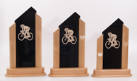 ovaler Sockel natur mit 2 Säulen, Sportsymbol Radsport |