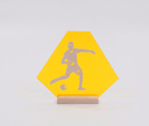 rechteckiger Sockel natur, gelbes Acrylglas, Sportsymbol Fussball |