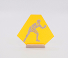 rechteckiger Sockel natur, gelbes Acrylglas, Sportsymbol Lauf |