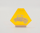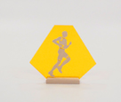 rechteckiger Sockel natur, gelbes Acrylglas, Sportsymbol Feuerwehr |