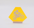 rechteckiger Sockel natur, gelbes Acrylglas, Sportsymbol Motocross |