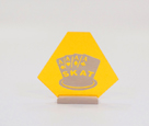 rechteckiger Sockel natur, gelbes Acrylglas, Sportsymbol Oldtimer |
