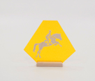rechteckiger Sockel natur, gelbes Acrylglas, Sportsymbol Reitsport |