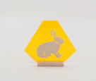 rechteckiger Sockel natur, gelbes Acrylglas, Sportsymbol Rassekaninchen |