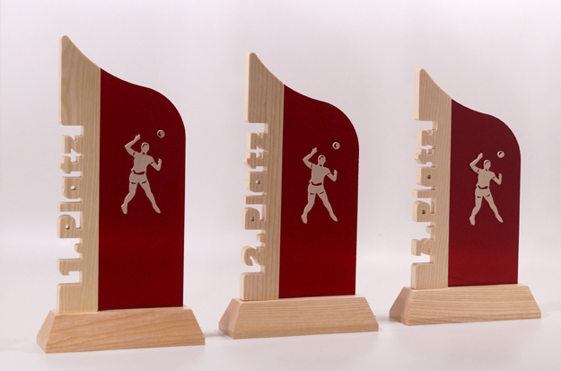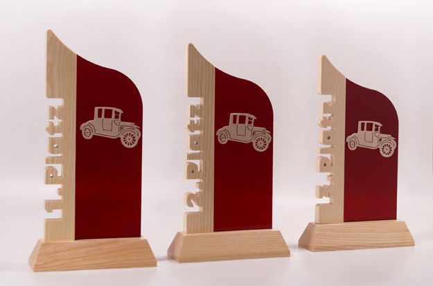 Pokale aus Holz und Acryl Rot