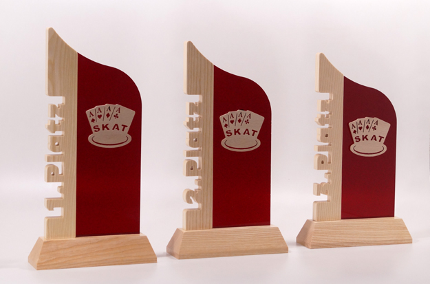 trapezf. Sockel, Säule 1.Platz, Sportsymbol Skat |