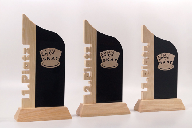 trapezf. Sockel, Säule 1.Platz, Sportsymbol Skat |
