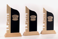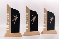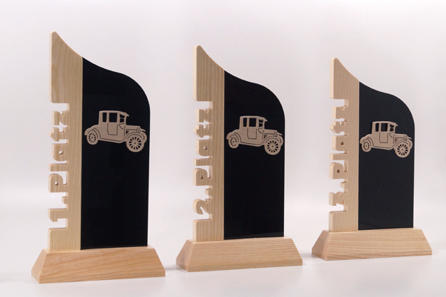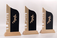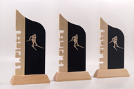 Pokale mit einem trapezförmigen Sockel aus massiver Esche natur,