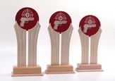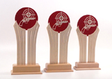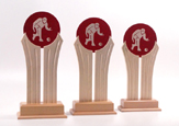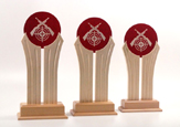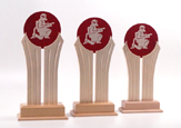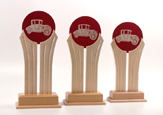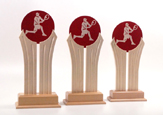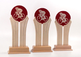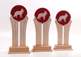 Pokale mit einem rechteckigem Sockel aus massiver Buche natur,